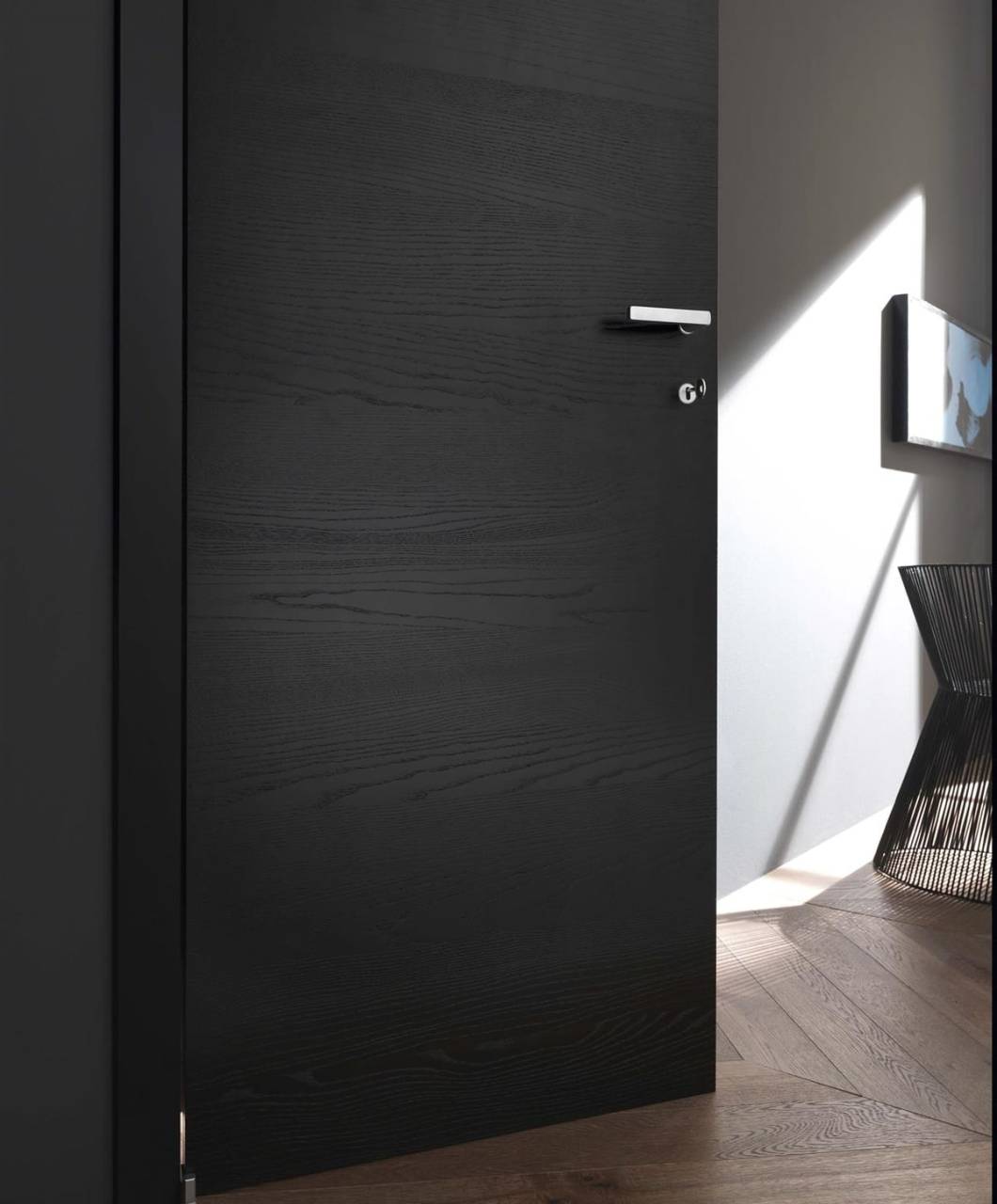 Κορνίζα σε αλουμινένιο επικαλυμμένο αλουμίνιο για να κρατάει το τελικό χρώμα, μετά την τοποθέτηση της πόρτας στον τοίχο. Ένα ενιαίο πλαίσιο παρέχει 4 τύπους ανοίγματος: δεξιά ή αριστερά, ώθηση ή έλξη. Το πλαίσιο Filodoor έχει σχεδιαστεί για τοποθέτηση σε τοιχοποιία ή γυψοσανίδες. με μαγνητικη κλειδαριά.