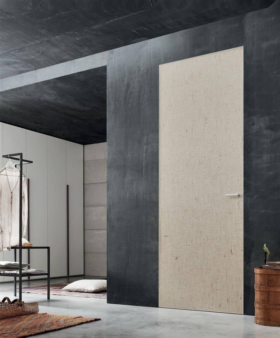 Πλαίσιο πάχους 40 mm σε MDF που καλύπτεται με CPL ή με ανάγλυφη λάκα. Σχεδιασμένο για αναστρέψιμο άνοιγμα, το MDF έχει το ίδιο φινίρισμα με το πλαίσιο. Αποκλειστικοί αναστρέψιμοι ρυθμιζόμενοι αρθρωτοί άξονες, μαγνητική κλειδαριά.
